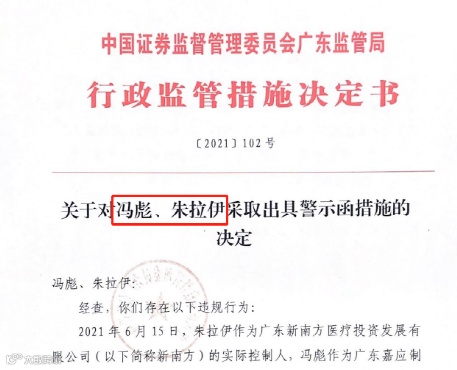 作为签订《备忘录》当事人的冯彪、朱拉伊也同样被采取了出具警示函的行政监管措施,两人目前分别为嘉应制药副董事长和董事长兼总经理。