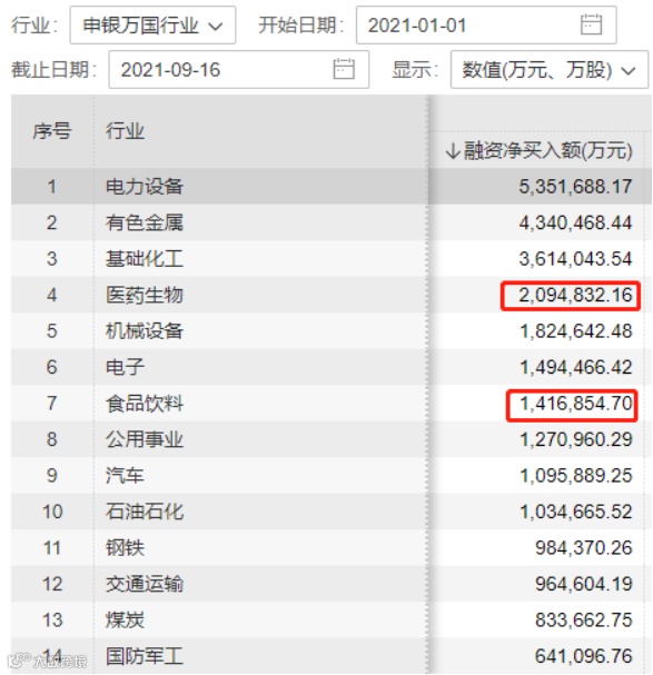 据Wind统计,今年以来,融资客买入电力设备、有色金属、基础化工等热门行业金额居前,医药生物、食品饮料等大消费板块也获融资客大额净买入,今年以来的净买入额分别为209亿元和141亿元。