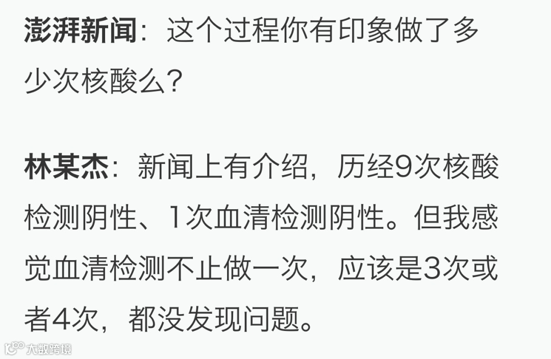 8月4日,林某杰从新加坡回国后,按照疫情防控要求进行了21天的隔离,同时也进行了居家隔离,其间多次核酸检测结果均为阴性。