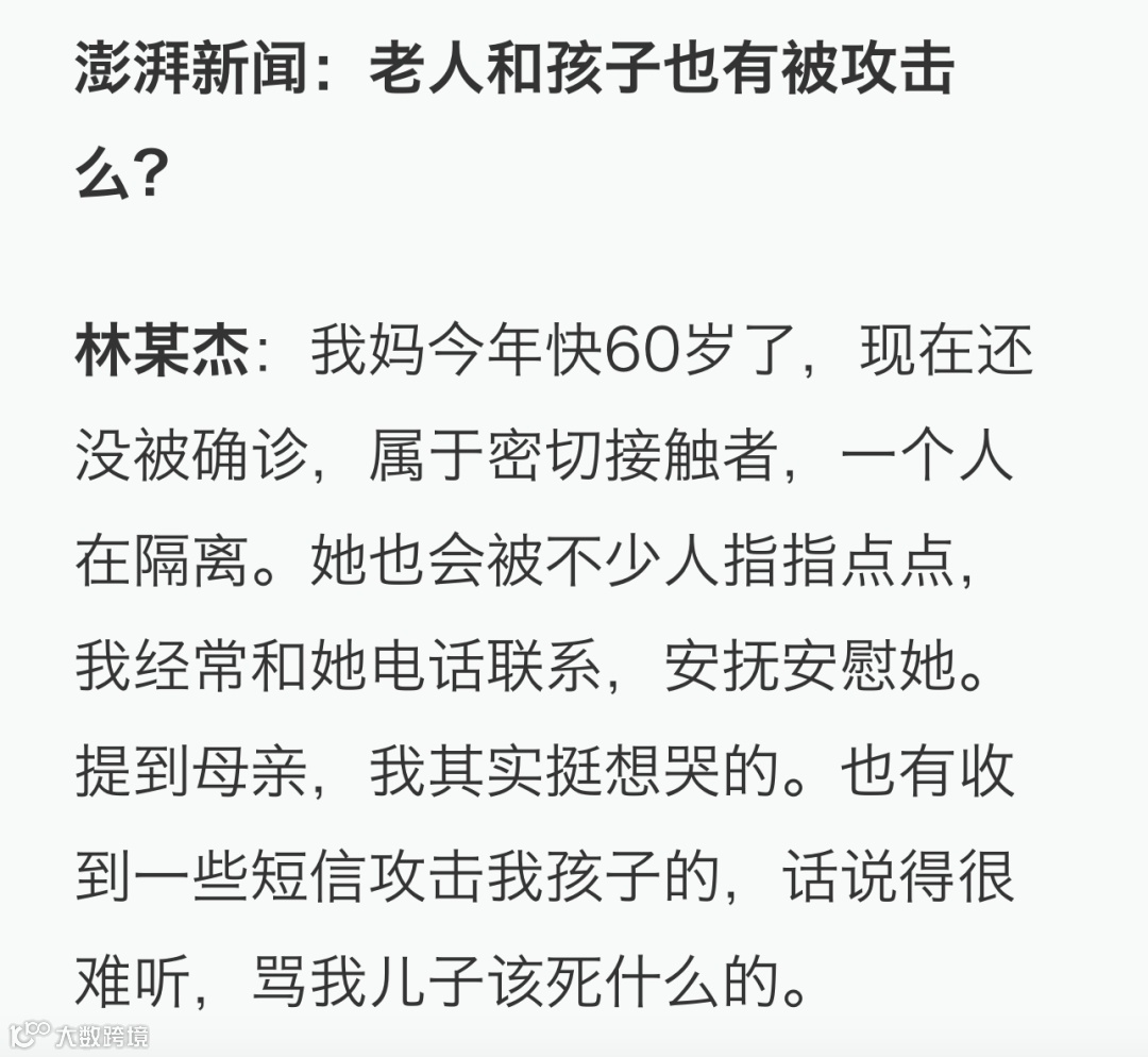 据林某杰介绍,在一家人相继感染后,骚扰电话和谣言很多,“有的打电话有的发短信,基本天天有人骂。”