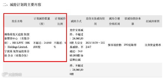 截至公告日,合计持股8.98%的股东珠海高瓴天达股权投资管理中心(有限合伙)、HHLPPZ(HK)Holdings Limited、宁波高瓴智远投资合伙企业(有限合伙)(其为一致行动人),计划减持公司股份数量合计不超过2406万股,合计不超过公司总股本的6%。