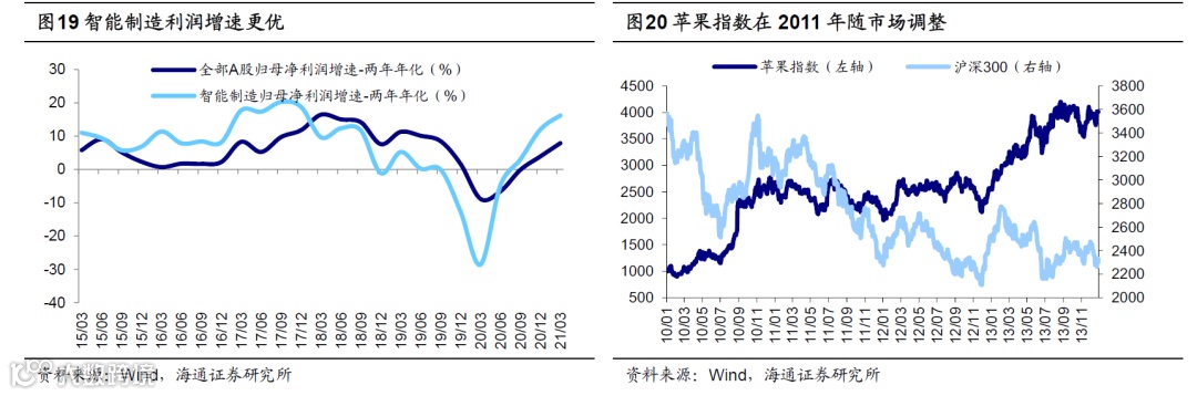 其次是新老基建。基础设施建设是稳增长的重要抓手,稳增长政策发力有望直接带动新旧基建投资的增长。新基建主要指的是硬科技行业,今年3月中旬开始我们撰写了《中国智造系列报告1-5》,一直坚定看好科技赋能的智能制造,也就是硬科技行业,这些行业基本面较好,股价表现强劲,基本已经得到市场认可。比如,1-8月新能源汽车批发和零售销量累计同比分别为225%和202%,21Q2新能车指数净利累计同比为102%。目前硬科技的智能制造景气度高已经成为市场共识,主要的焦点是如何看待高估值。而在《借鉴智能手机看新能源车产业演变-20210906》中我们指出,今年新能源车产业链类似2010年苹果手机产业链,高景气、高估值,未来几年有望维持高景气,阶段性消化估值需要等市场环境改变。老基建方面,随着稳增长政策进一步加码,财政发力有望带动基建投资的增长,8月基建投资当月同比为-6.6%,两年平均为-0.02%,较7月数据已经企稳回升。目前工程机械、建筑建材估值和盈利匹配度不错,截至21/09/30 工程机械PE(TTM,整体法,下同)为12.0倍、21Q2归母净利累计同比为25.6%、对应PEG为0.47,建筑为8.8倍、32.5%、0.27,建材为13.0倍、31.3%、0.42。