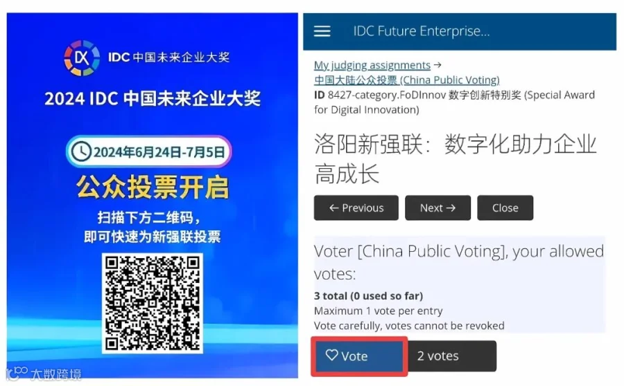 洛阳新强联近期正在进行2024 IDC中国未来企业大奖申报,目前进入公众投票阶段,请动动您的金手指,一起来为“新强联”打call吧~