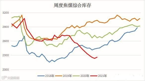 然而,短期内现货市场上,供需矛盾难以根本解决。面对山东、陕西等地陆续焦化企业的限产,焦化厂开工率在持续下降,双焦供给难补,今年焦煤库存频频被动下降,已处在近5年来的低位。