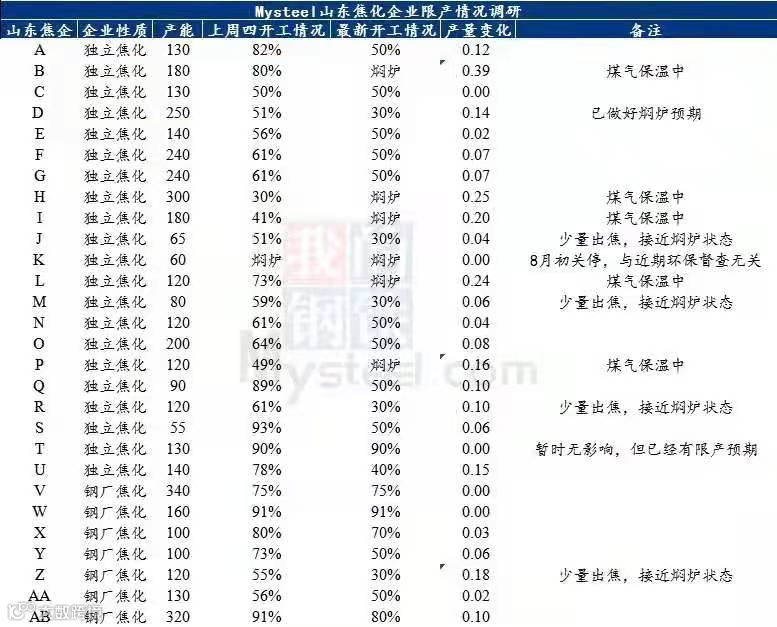 根据我的钢铁网站统计的数据显示,山东地区焦化企业,本周开工率已经出现了几乎腰斩的局面,从上一周的开工率80%左右,下降到了50%。
