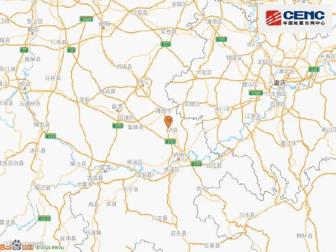 中国地震台网称,震中离最近的福集镇3公里,距泸县县城7公里,距隆昌市16公里、距富顺县36公里,距泸州市38公里,距成都市196公里,距重庆市124公里。