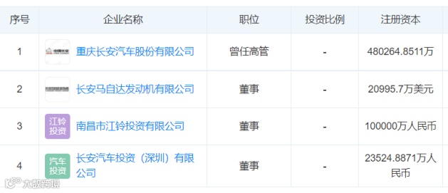 天眼查数据显示,余成龙不仅在长安汽车担任副总裁,也在长安马自达发动机有限公司、南昌市江铃投资有限公司以及长安汽车投资(深圳)有限公司担任董事职务。