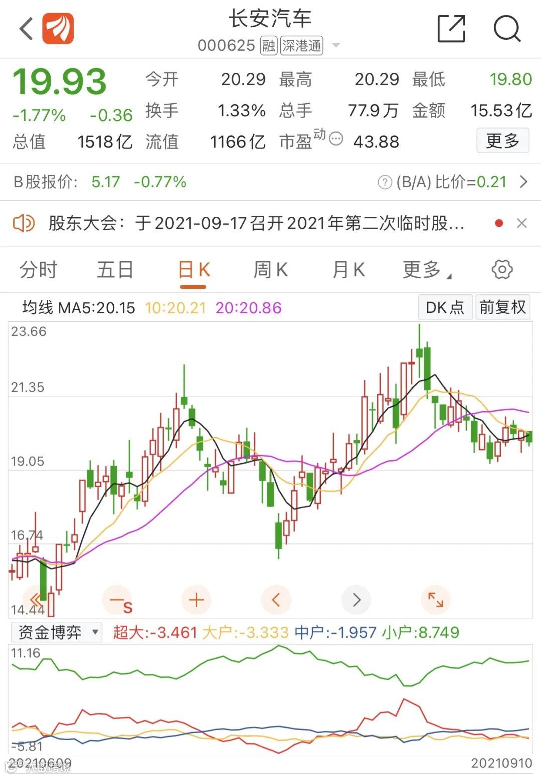 因此,长安汽车股价在3月份创下年内低点9.71元/股后便一路上行,期间还不乏连板走势并创下了23.66元/股的历史新高,截至上周五收盘,报收19.93元/股,市值超1300亿元。