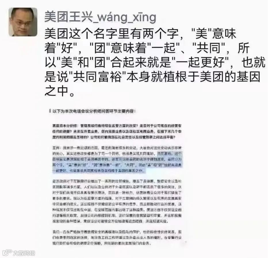 王兴“拆解”公司名,谈共同富裕也着实蹭了一波热点,引发一些网友跟帖写起了小作文: