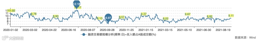 图:融资买入额占A股成交额比例(来源wind,数据截至2021年9月9日)
