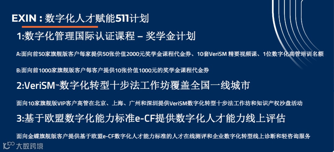 人才的能力建设对于一个CIO、对于数字化转型极其重要。因此,金蝶与EXIN国际信息科学考试学会战略合作,联合发布了“数字化人才赋能511计划”,结合金蝶云·星空旗舰版的可组装业务能力,组装人才能力,用国际认证体系赋能更多的中小企业,帮助企业培养一批具备国际视野、既懂业务又懂IT技术的复合型人才。