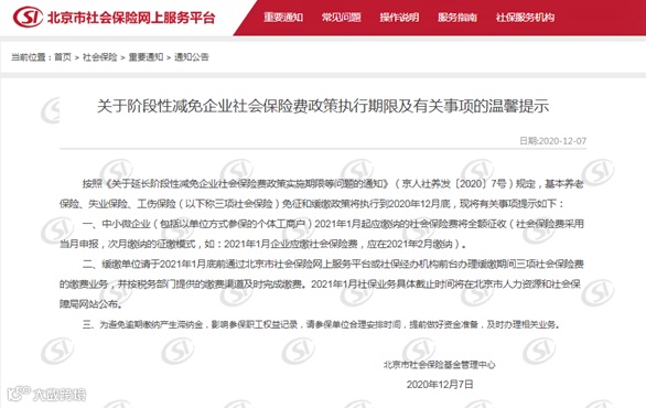 1、中小微企业注意了,社保免征和缓缴政策执行到2020年12月底,2021年1月起应缴纳的社会保险将全额征收!