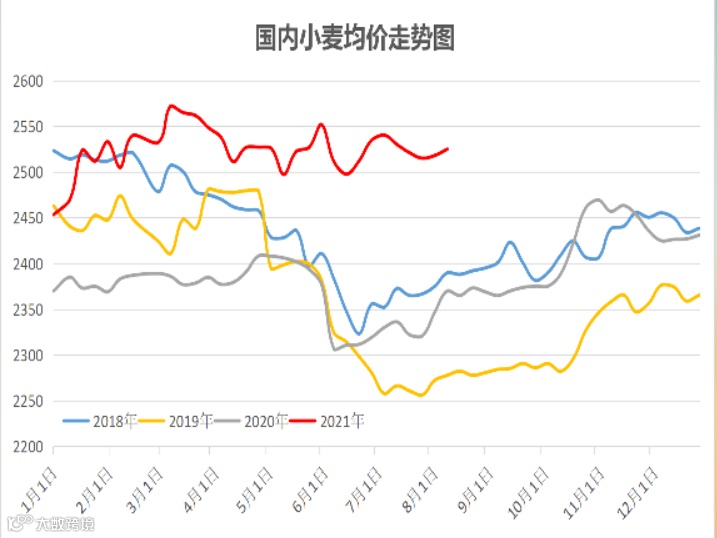 在价格方面,进入8月份,受新冠疫情在部分地区出现反复及前期暴雨内涝等因素影响,沉寂了一个月的小麦价格出现稳中上涨行情。市场监测显示,当前主产区制粉企业新产普麦主流进厂价为2530~2590元/吨,一周内上涨了20~40元/吨,华北局部高点价格再度接近2600元/吨的位置。
