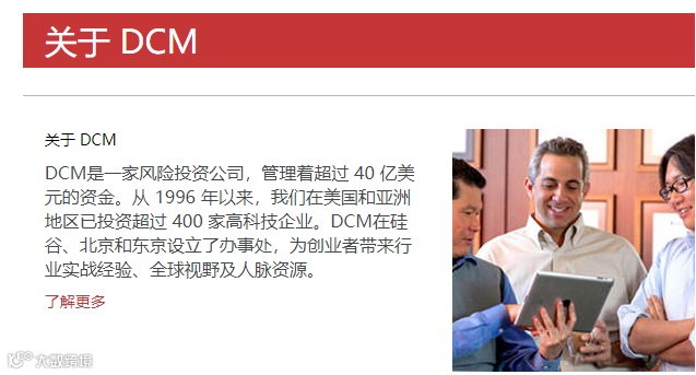 DCM成立于1996年,管理着超40亿美元基金,是一家专注早期投资的风险投资公司。从1996年以来,公司在美国和亚洲地区已投资超过400家高科技企业。DCM在中国的投资案例包括当当网、快手、脉脉、探探、小马智行、途牛、唯品会、丁香园、58同城等。