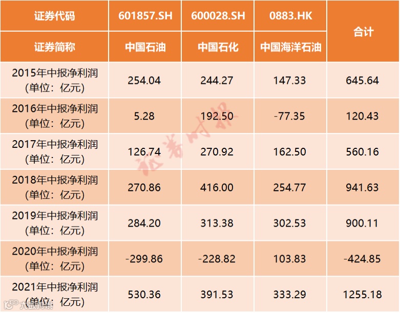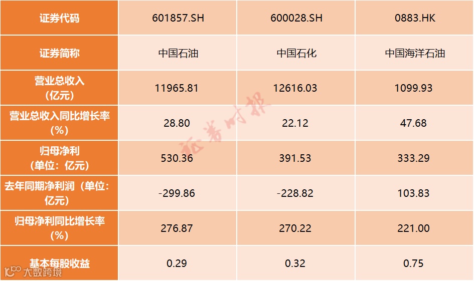 8月29日晚间,中国石化(600028.SH;00386.HK)披露半年报,至此,“三桶油”半年报已全部公布,其中,中国石油(601857.SH)和中国石化扭亏为盈,中国海洋石油(00883.HK,下称中海油)净利润同比增长221%。