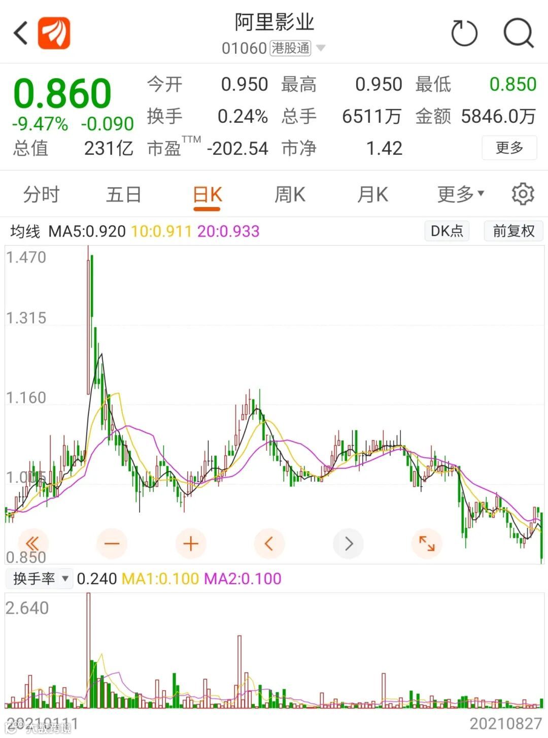 在港上市的阿里影业亦一度出现超过10%的暴跌,截至收盘,阿里影业跌逾9%,股价创下三年新低。