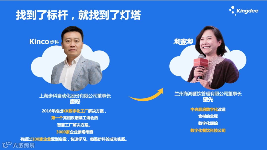 比如,兰州海鸿餐饮管理公司董事长肇先,因为金蝶搭建的交流平台,认识了步科的董事长唐咚。步科是一个做数字化、自动化的高科技企业,肇先带着她的团队到步科后,就把步科数字化工厂解决方案的一些技术用到了餐饮行业。兰州海鸿建立了一个数字化的中央大厨房,食材的全过程是数字化跟踪,大大提高了餐饮的服务效率。企业找到了标杆,就找到了灯塔,对标对中小微企业非常重要。