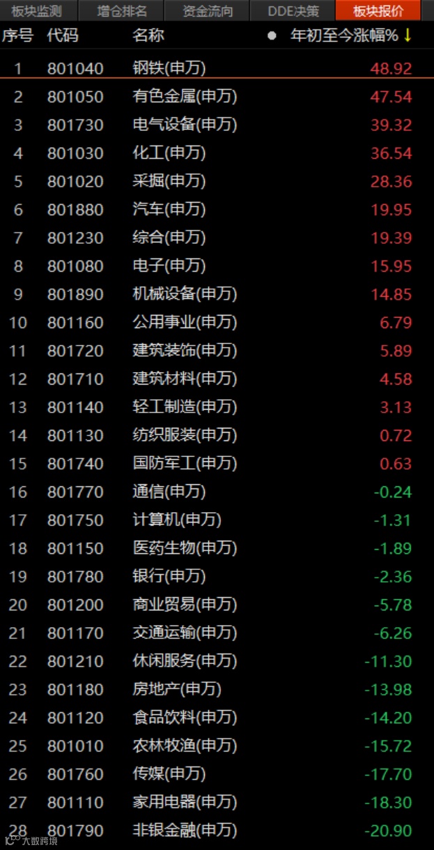 今年以来,哪些板块跑赢了大盘?许多人没想到会是“浓眉大眼”的钢铁板块。