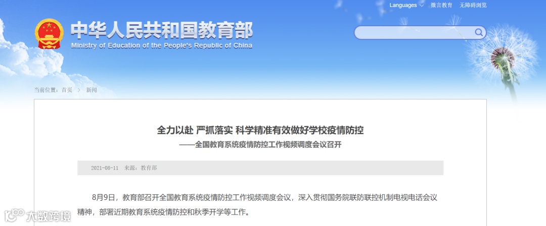 8月9日,教育部召开全国教育系统疫情防控工作视频调度会议,深入贯彻国务院联防联控机制电视电话会议精神,部署近期教育系统疫情防控和秋季开学等工作。