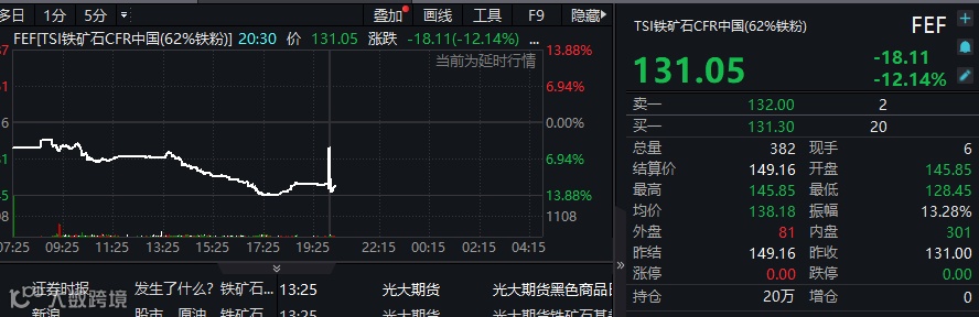 对于外围市场而言,这将是一个难熬的交易日。8月19日,全球市场几乎都处在急速杀跌的过程当中。这其中,最为惨烈的是大宗商品期货市场。新加坡铁矿石期货下跌12%,至每吨131.05美元,大连铁矿石期货下跌7%,铜价跌至四个月低点,锡一度暴跌11%。