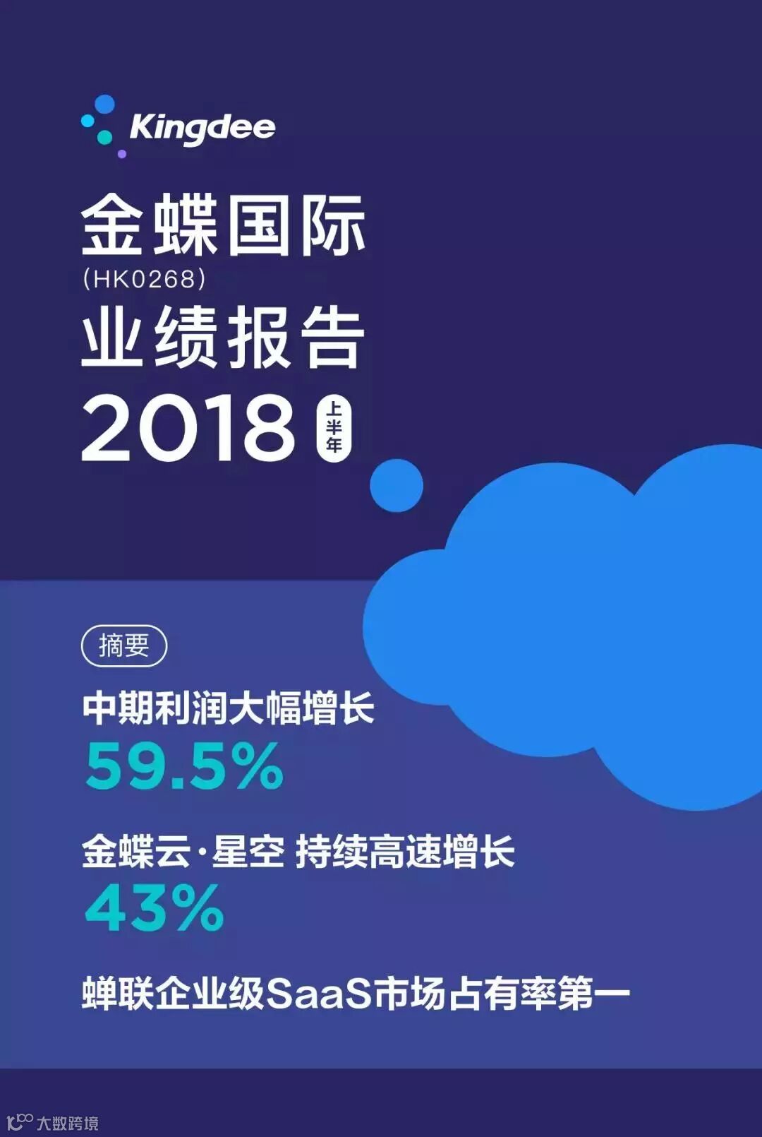 金蝶2018年中期利润同比大幅增长60% 云业务收入占总收入达27.8%
