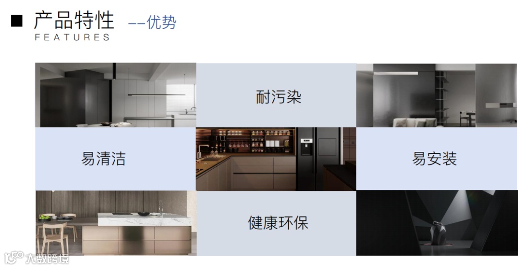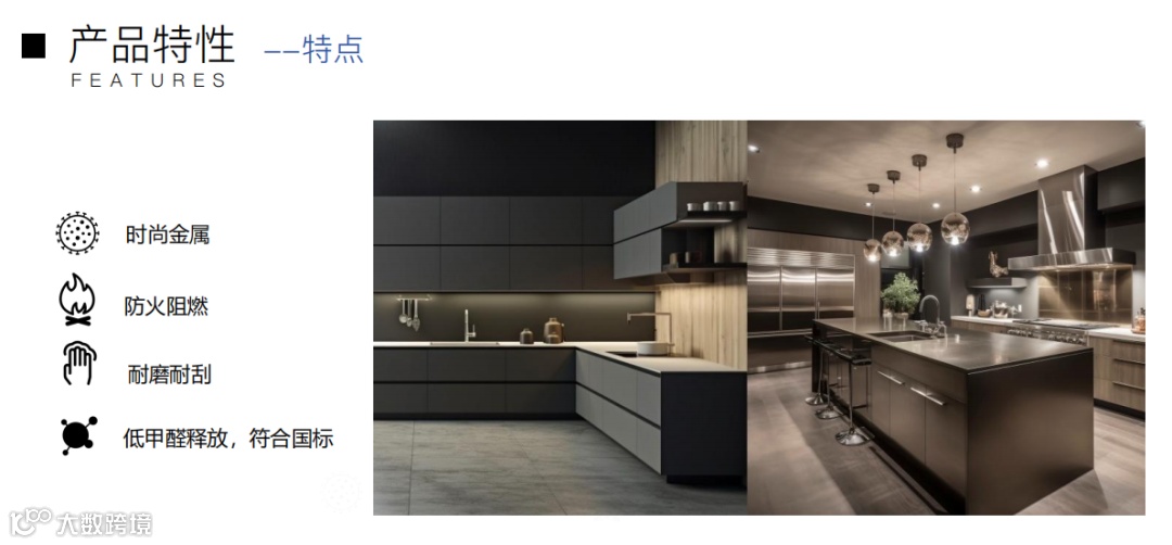 产品特性:金属质感、多样异形肌理面、耐刮耐磨、易清洁、防水防霉、E0甲醛