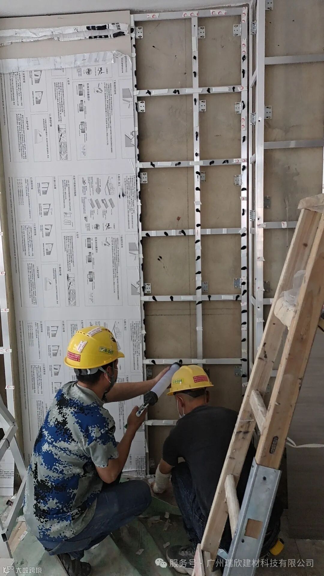 不打底安装工艺在基层墙面高平整度情况下,无需背后基层封底,直接粘贴于龙骨上,背后可轻松穿插线管,专用的墙面调平龙骨横向布置,安装快捷大幅降低安装人工成本、缩短项目工期、优化项目成本。其工艺更可实现板材与墙面间形成空腔,促进空气流通,避免潮气积聚,保证板材干爽状态。