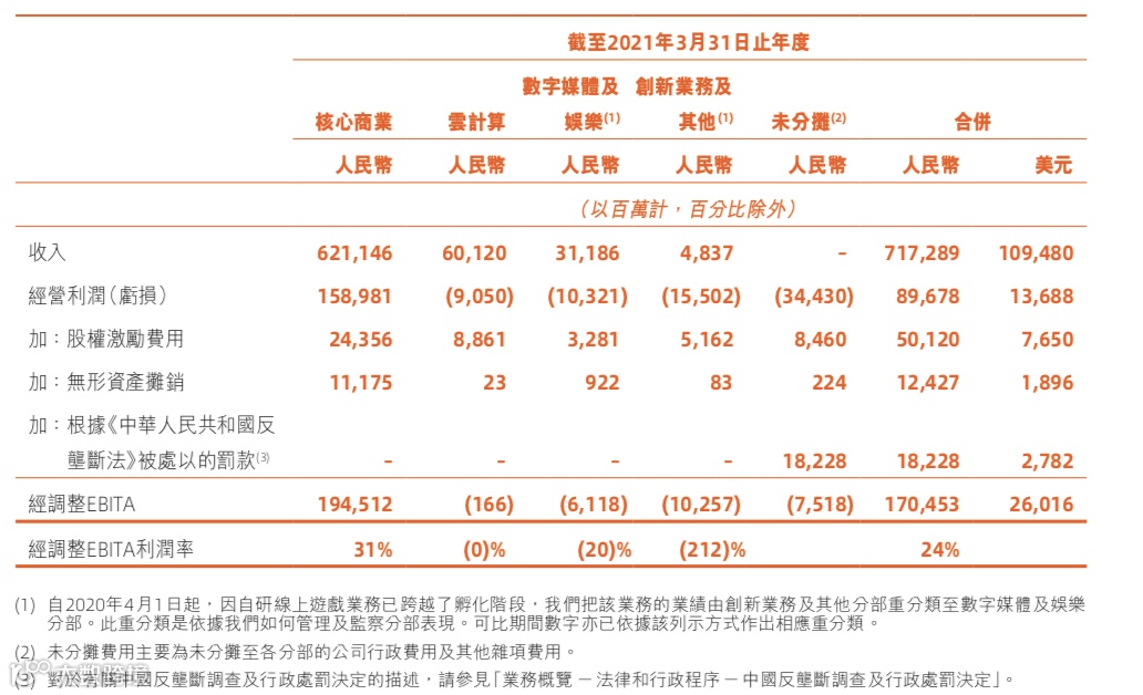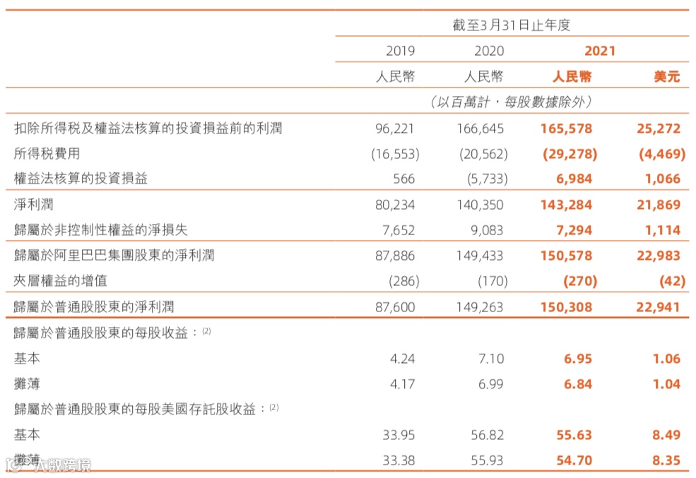 剔除该影响及其他若干项目,2021财年非公认会计准则净利润为1719.85亿元(262.50亿美元),同比增长30%。