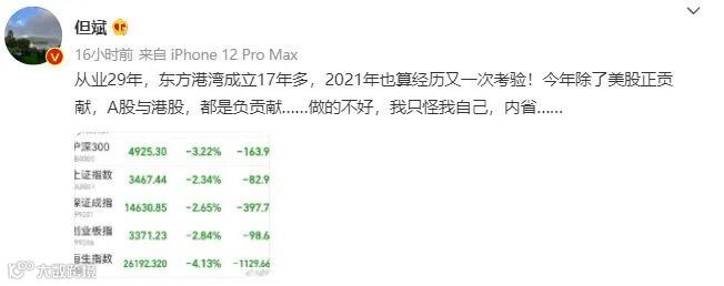 股市大幅震荡,私募大佬但斌也坐不住了,7月26日晚间,但斌在微博上发文称,“从业29年,东方港湾成立17年多,2021年也算经历又一次考验!今年除了美股正贡献,A股与港股,都是负贡献……做的不好,我只怪我自己,内省…… ”