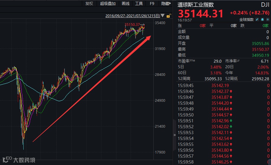 近两个交易日(7月23日、7月26日),美股三大指数连续创出历史新高,谷歌、Facebook、微软等巨头的股价纷纷创新高,苹果距离历史高位也仅剩一步之遥。