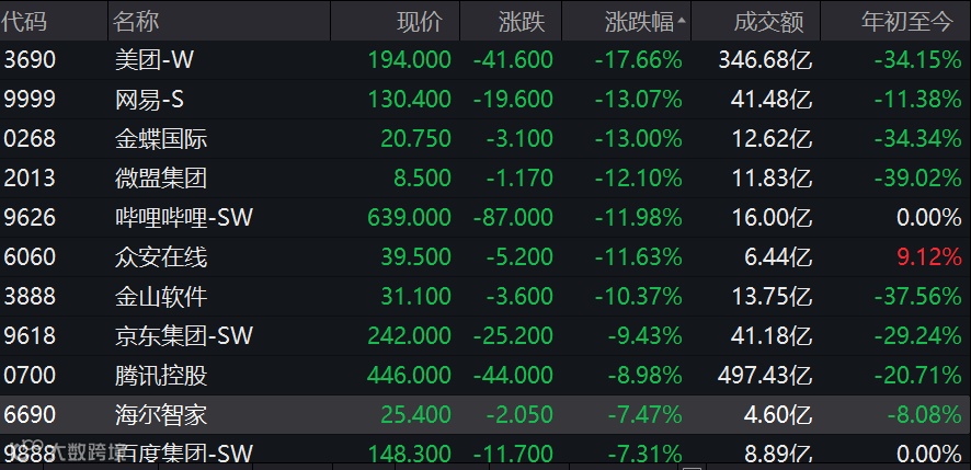 美股中概股中,互联网股的损失也非常惨重,阿里巴巴、拼多多、网易、贝壳、京东、滴滴出行、哔哩哔哩、百度分别下跌10.41%、15.48%、20.57%、35.60%、12.95%、21.18%、19.51%、9.03%,市值分别蒸发了3847亿元、1304亿元、1027亿元、1031亿元、979亿元、669亿元、523亿元、362亿元。