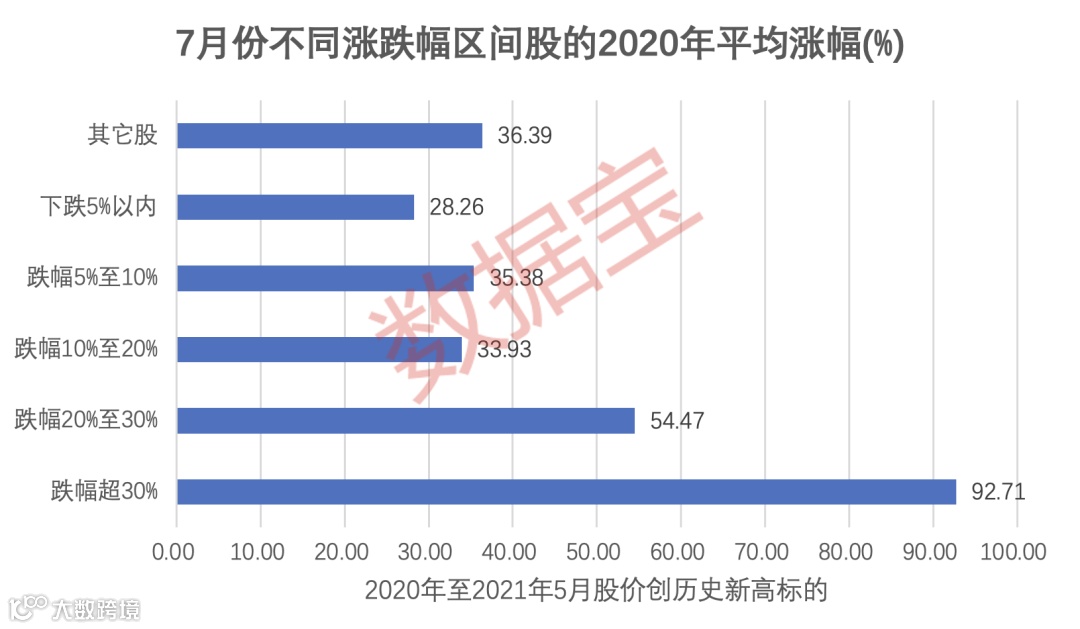证券时报·数据宝统计显示,剔除今年5月份以来上市新股,2020年初至2021年5月末股价创历史新高的1036股,今年7月以来平均下跌5.47%,但其余个股7月份以来平均上涨1.68%。