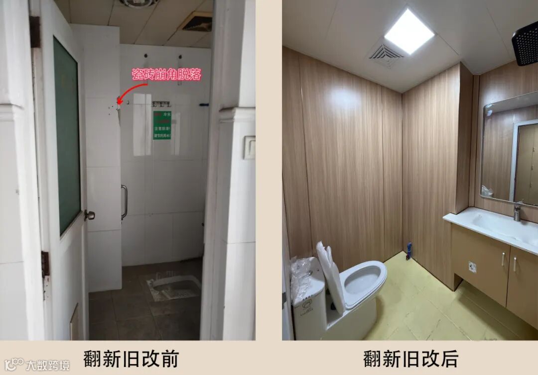 瑞欣产品旧改有别于传统旧改方法,传统翻新旧改需将原墙面铲除后重新做基层及防水后再贴产品,不仅耗时且产生过多建筑垃圾,增加不少人工成本。