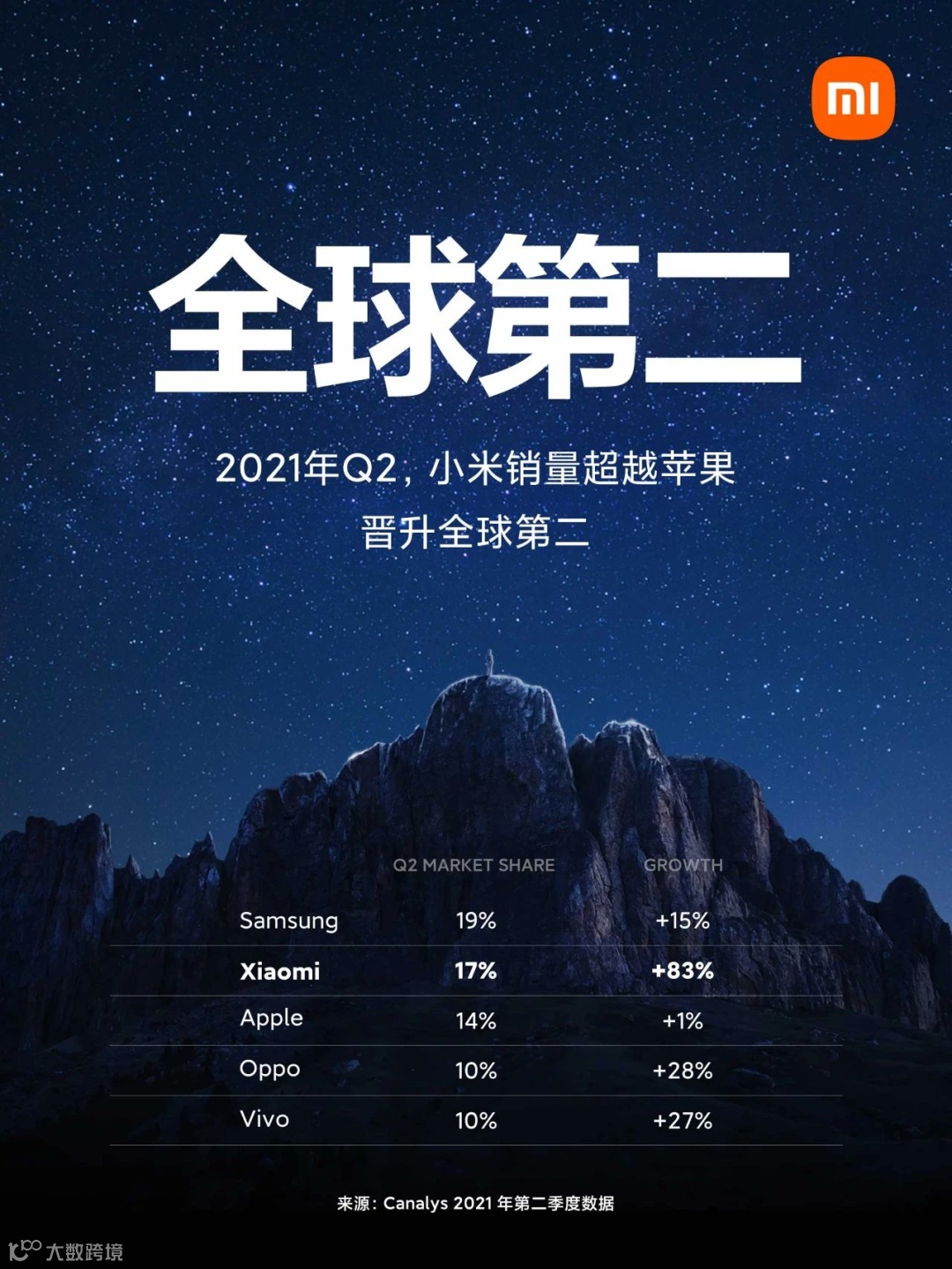 目前,小米手机的全球市场占有率正在不断攀升,Canalys发布第二季度全球智能手机市场份额的报告,小米市场份额17%,智能手机销量超越了苹果,晋升全球第二。