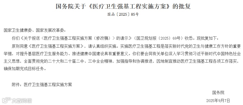 在设施条件方面,工程明确要优化基层医疗卫生机构规划布局,进一步加强城市社区卫生服务体系建设。针对县区医疗卫生设施设备,“十五五”期间将支持1000个左右紧密型县域医共体建设,推进县级医院、重点中心乡镇卫生院提质升级。