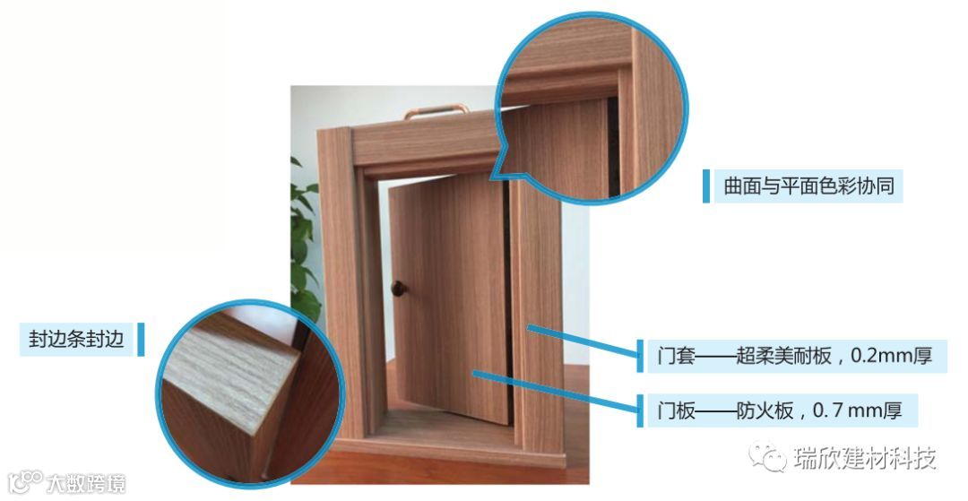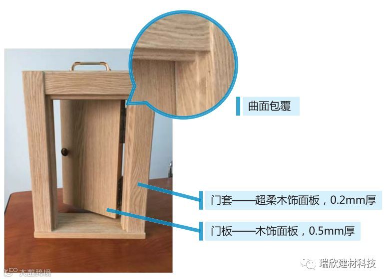 超柔木饰面板可做门套的曲面包覆 配合木饰面板的同色封边门板,使门 韵门板颜色一致,自然美观,环保 耐用。