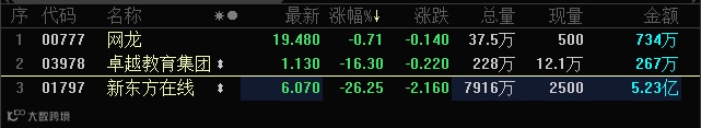 A股如此表现,可能与港股有较大关系。今天港股全天表现不佳,特别是恒生科技指数出现了超过3%的大跌。恒指、国企指数的跌幅也不小。从板块来看,港股教育股重挫,新东方跌幅一度扩大至50%,市值蒸发逾400亿港元;新东方在线、思考乐教育跌近28%。美股盘前,新东方、好未来亦暴跌近50%。