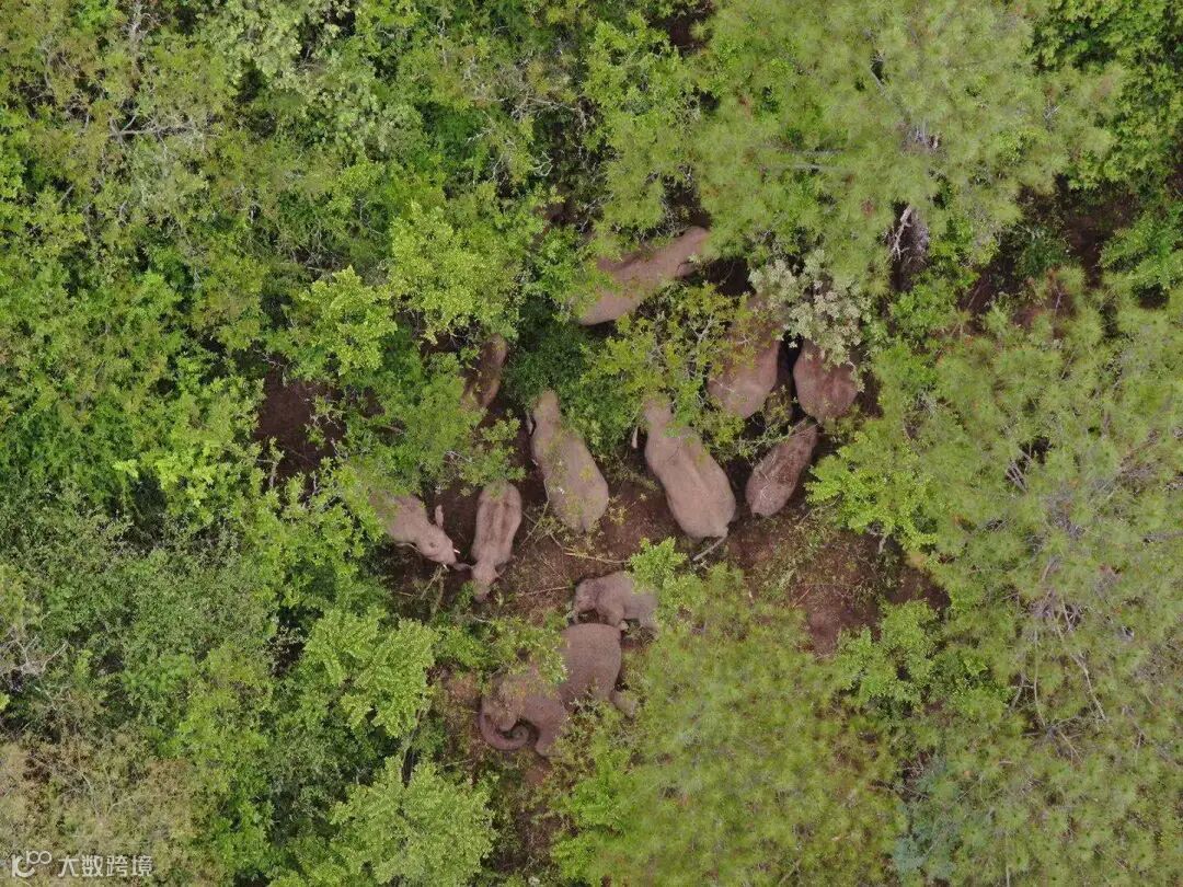 ▲7月6日,象群在新平县桂山街道附近林地内休息,动态整体平稳。图源云南省森林消防总队