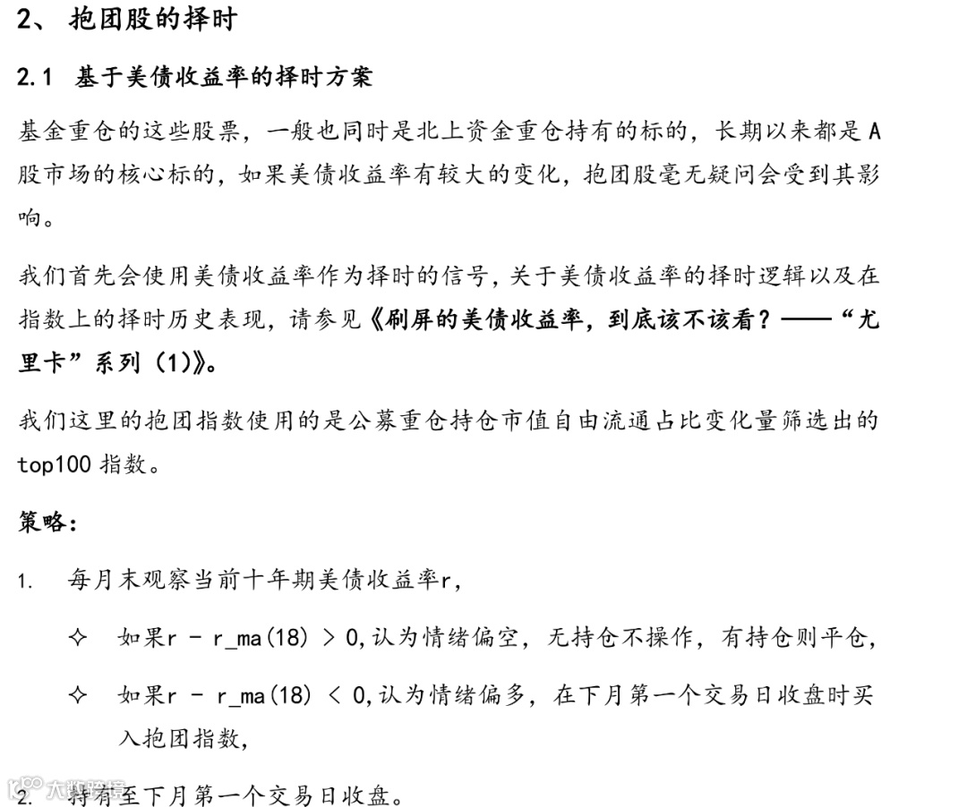 我们介绍了两种择时方法,都在抱团股指数上有较好表现,其中: