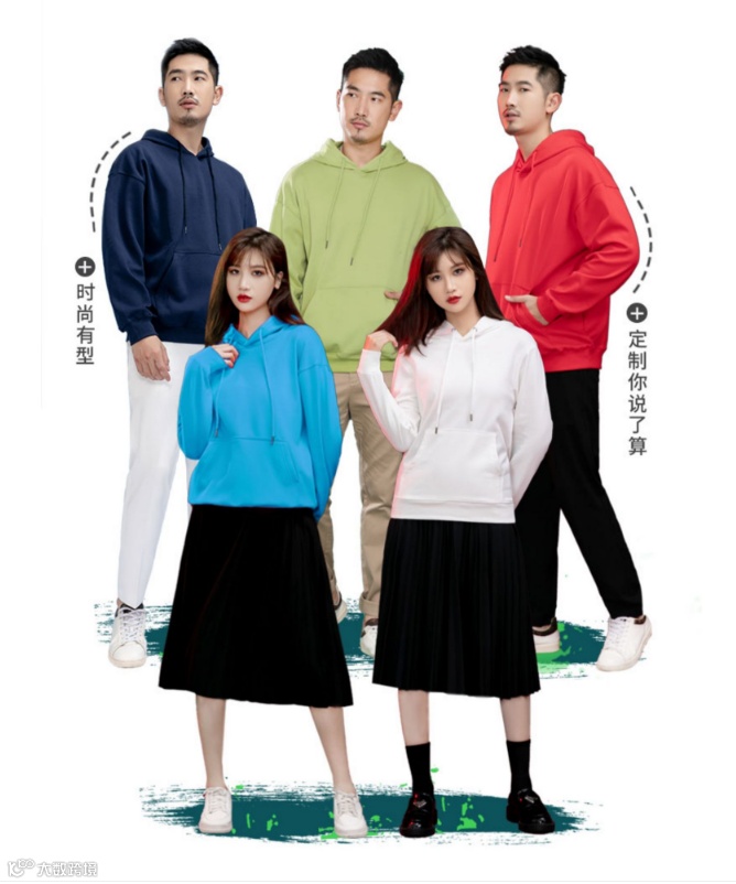 款式是团体卫衣定制非常重要的一个点。对于款式的选择不同的企业也会有不同的需要,一般来说,在定制之前就需要确定卫衣的款式了,同时款式也会根据不同季节的温度进行适当的调整。在冬季加绒卫衣是最受欢迎的一种款式,加绒卫衣也可以分为带帽的和带拉链的。带拉链可以增加卫衣的使用场景,一旦我们感觉到有点热的时候可以把拉链拉开。