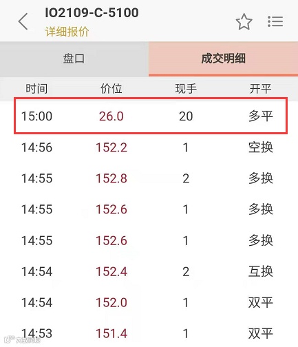 三是,乌龙指。如果交易者在最后的集合竞价环节下错单,是无法撤单的。今天的5100看涨期权合约,有可能是交易者误输入的卖出平仓的价格,导致最终的成交价远远小于集合竞价前的成交价。