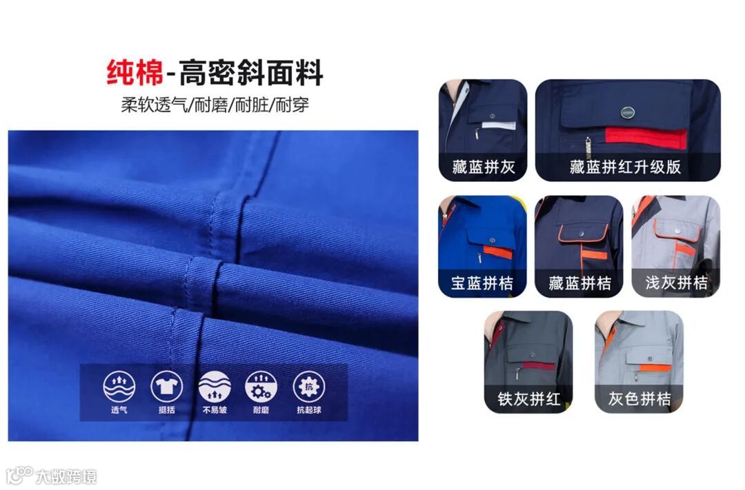 2. 目前市面上一般的劳保工作服,都是选用涤卡劳保服面料。这种面料在质感、手感、垂感与支感都很强,穿着起来不易走样、且耐用性好价格还实惠,因此大部分的劳保服都是选用这种面料,生产出来的劳保服成品价格也比较大众亲民。