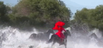 贺娇龙表示,事后回看这段视频才感觉到后怕。“因为当时马匹比较多,一旦被踩到或者被河水冲走,还是很危险的。不过,只要能拍出宣传家乡的好片,摔到河中也值得。”