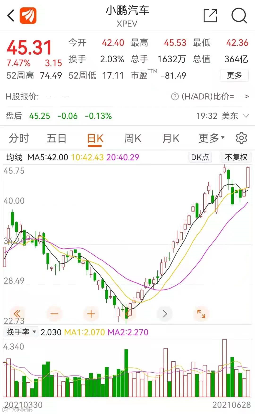 美国时间6月29日,小鹏汽车美股大涨超7.47%,当天市值增长超160亿元人民币,最新达2347亿元人民币。尽管今年经历了一轮大幅回调,但小鹏汽车美股自去年上市以来,累计涨幅仍然超过190%。