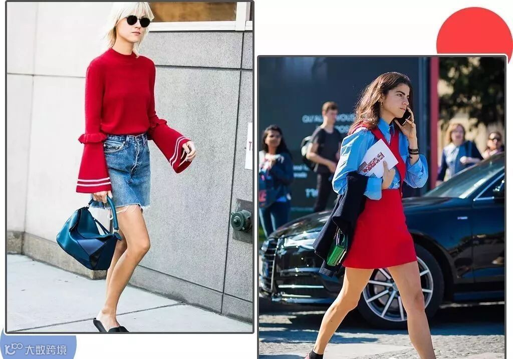 自古红蓝出CP,饱和度极高的“撞色”极其亮眼,不光被广泛应用在秀场上,在日常穿搭中,牛仔蓝+红色的组合不但上镜,还有种复古感,一眼从人群中看到你!