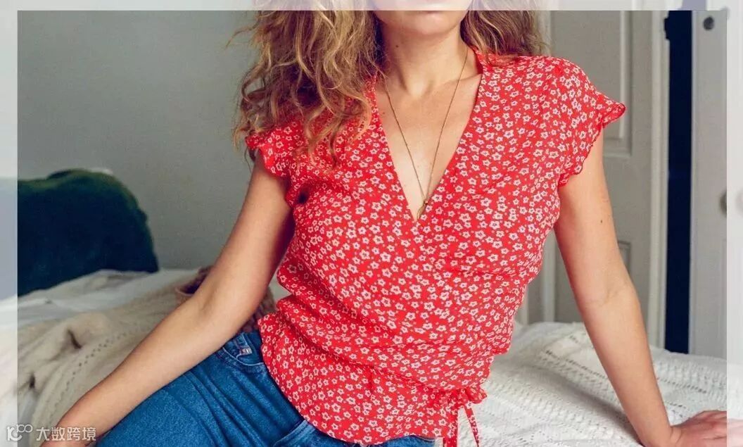 红色碎花上衣配牛仔,度假风情呼之欲出,照片拍出来特别好看~