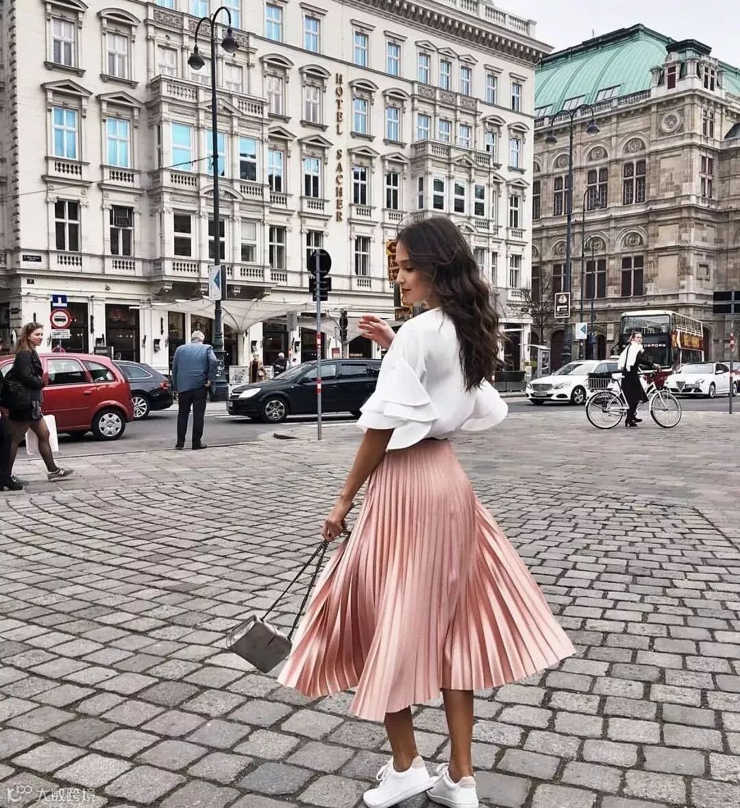 而大面积的粉色系穿搭,最好可以加入小面积的白色单品,这样有助于提升整身搭配的质感。