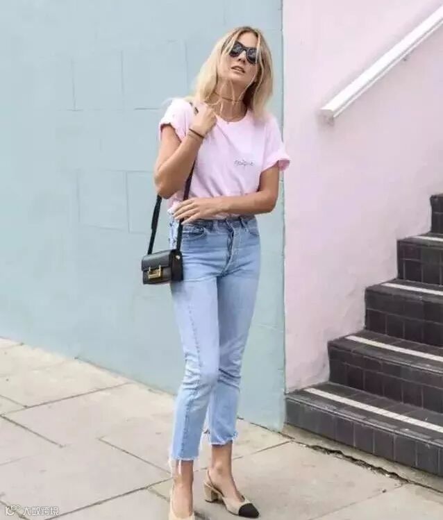 爱穿蓝色牛仔裤的你,小粉鞋的搭配能打败小白鞋呀!