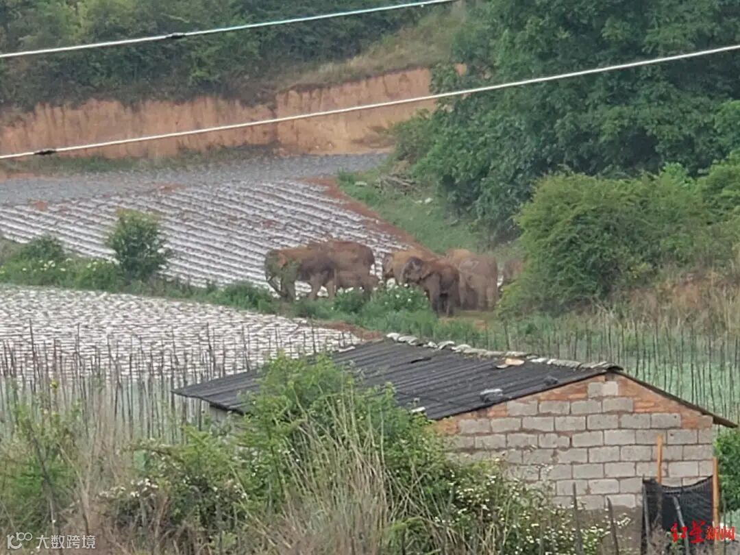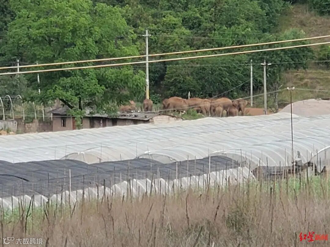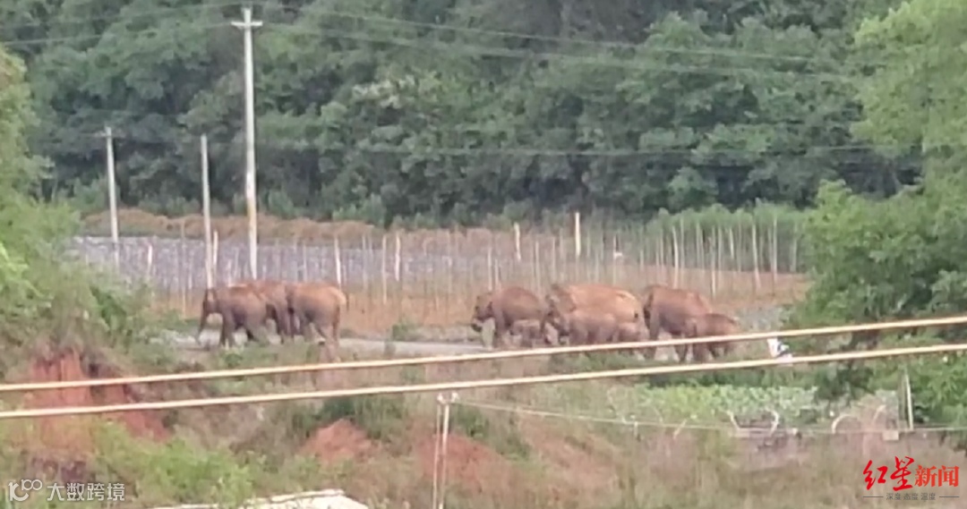 据现场人士发来的视频显示,此次北行的15头亚洲象全部在内,包括9头成年象,3头亚成体象,以及3头小象。
