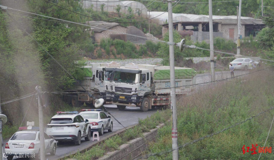 16时30分许,群象从森林里走出,到达山坳之间一条小路上。而渣土车司机们也接到命令往山坳左边移动,同时宝夕公路通往料草坝村方向的公路也被车辆堵住,阻止大象向北移动。